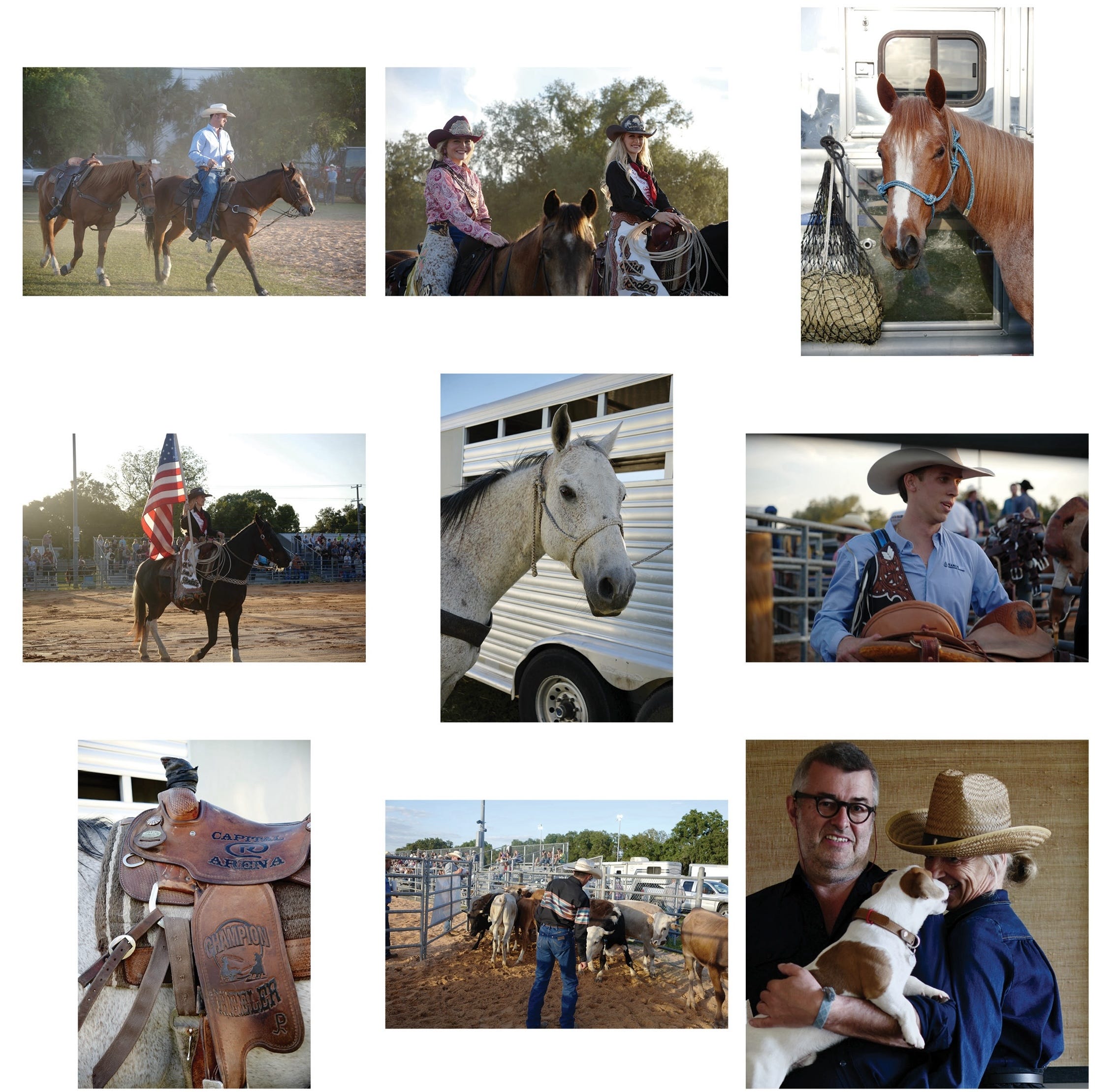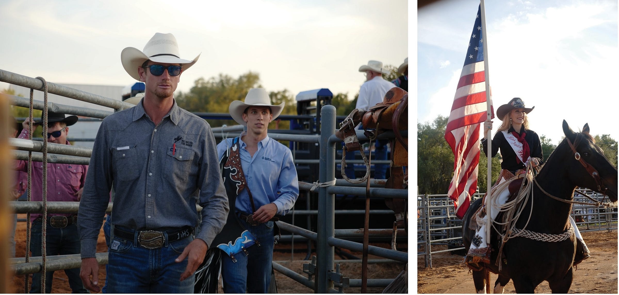 There was no barbecue at the rodeo. There was no beer, either. Toned women were barrel racing pintos in spotless slim-fitted shirts, tapered at the waist and chest. Handsome men in jeans and chaps were roping calves. Blonde and wavy-haired, Miss Rodeo Florida paraded the Stars and Stripes on horseback during the grand entry as the audience stood and sang the national anthem. Stitched leather boots and cowboy hats were all around.