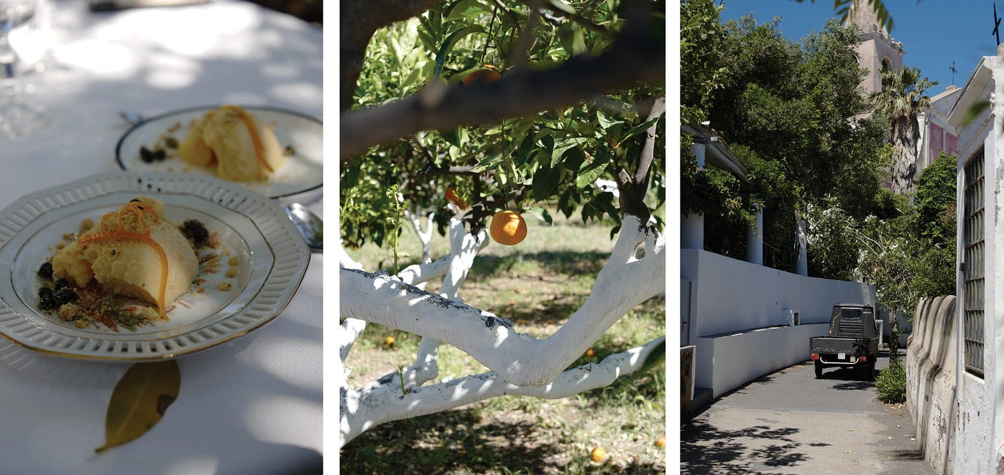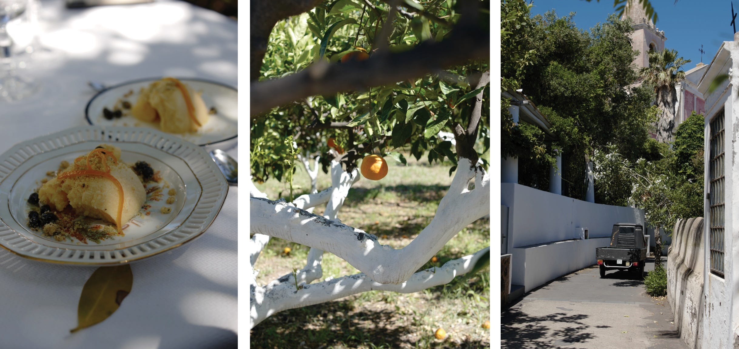 La Libreria sits underneath what is probably the largest tree on the island. The sun filters through the canopy onto the six decked tables in the garden as we're having Sunday lunch among the island's locals. Rosa, la nonna, joins the table where her daughter and son-in-law are already enjoying a bottle of white wine, their son, Max, in tow. Rosa is all dressed in yellow. We saw her on the boat when we arrived. Porters in Milazzo carried her purchases as she boarded, and an APE waited for her on the other side. With fiery red lipstick, rings on every finger, earrings, and a prominent Roman nose, she looks very much like my mother.